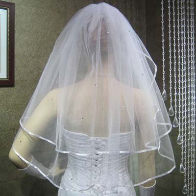 Wedding Veil. Elegant and luxurious mantilla.Beautiful lace and special design on your wedding ceremony.1. a hundred percent model new and prime quality.2. Material: gauze,satin.3. Color: Ivory or white.4. Total Length: approx 150cm, 60".5. Packing included: 1X Bride Veil..